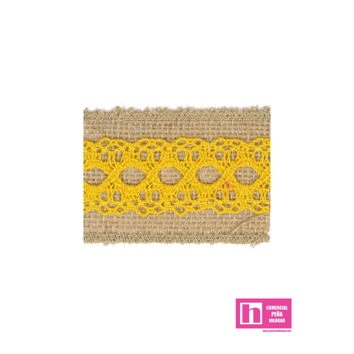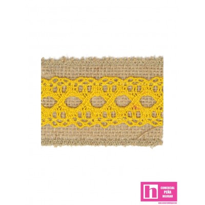 143356-6 GALON YUTE FANTASIA ETTI 50 MM. POLIAMIDA 50%-POL.50% YUTE/AMARILLO Venta en piezas de 25.00 M