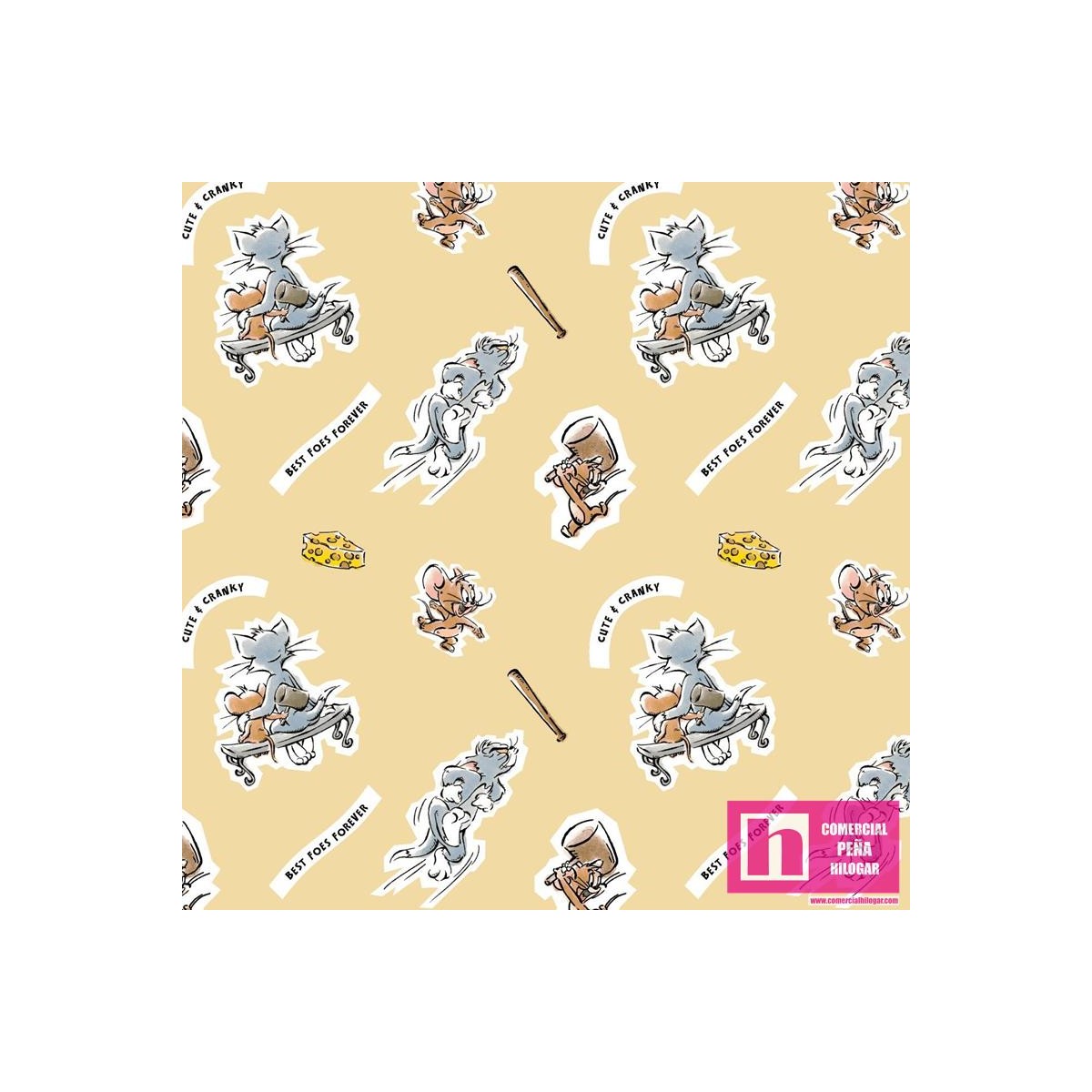 P108-24160201-01 PATCH. AMERICANO TOM AND JERRY - FOES FOREVER (01) - 110 CM. ALGODON 100% AMARILLO Venta en piezas de 7.00 M