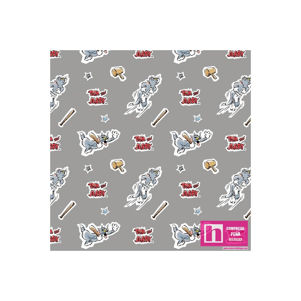 P108-24160205-02 PATCH. AMERICANO TOM AND JERRY - TOM (05) - 110 CM. ALGODON 100% GRIS Venta en piezas de 7.00 M