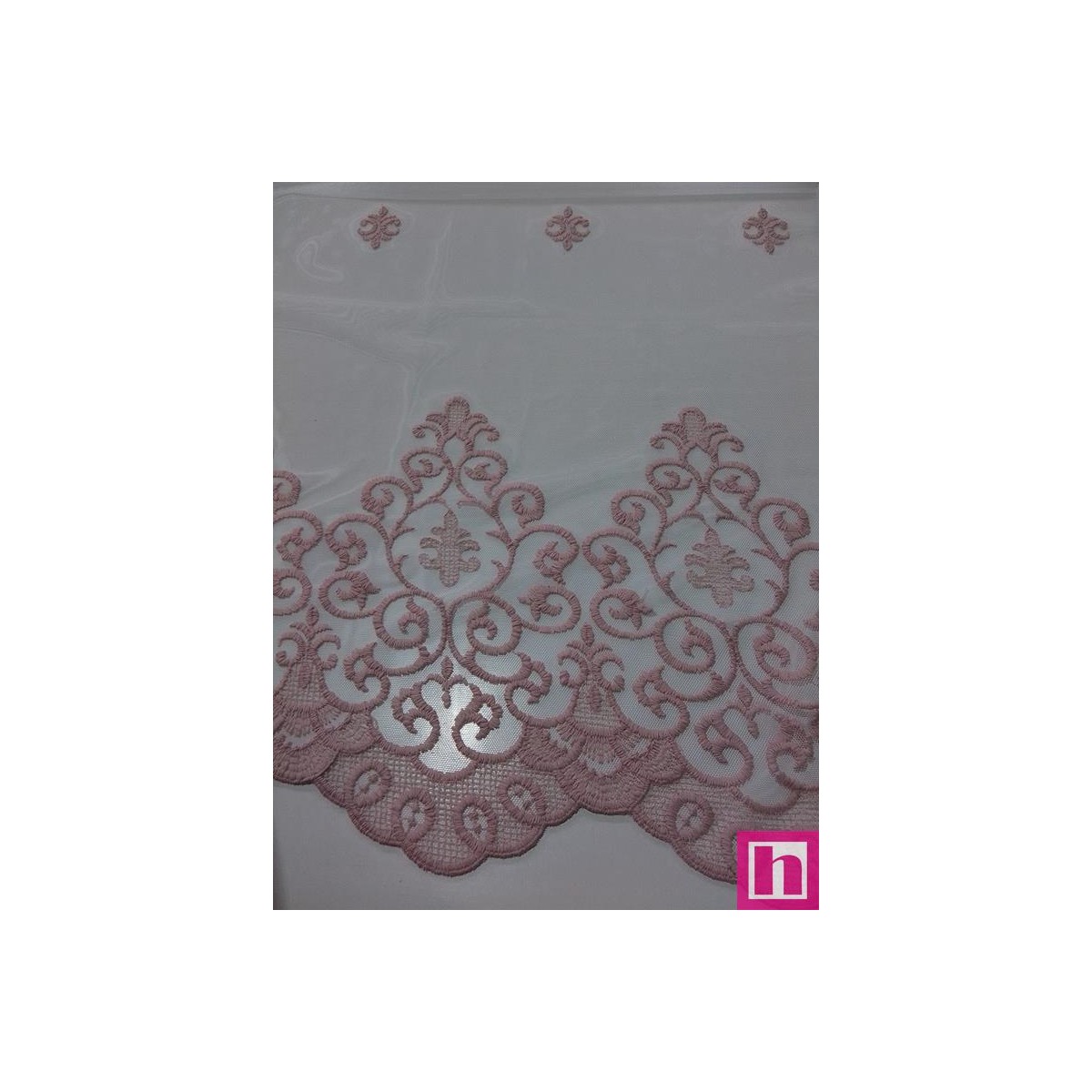 66062 TUL BORDADO AMBOS LADOS SELIN (02) 1.50 MTS. POLIESTER 100% BEIG BORDADO ROSA Venta en piezas de 15.00 M