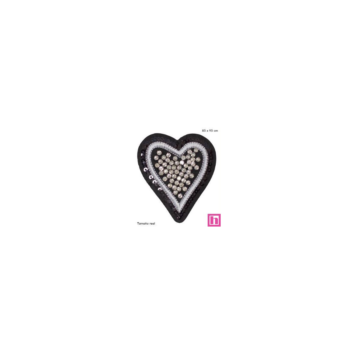 858206-02 APLICACION FANTASIA CESIO-CORAZON 85X95 MM POLIESTER/CRISTAL NEGRO Venta en piezas de 5.00 U