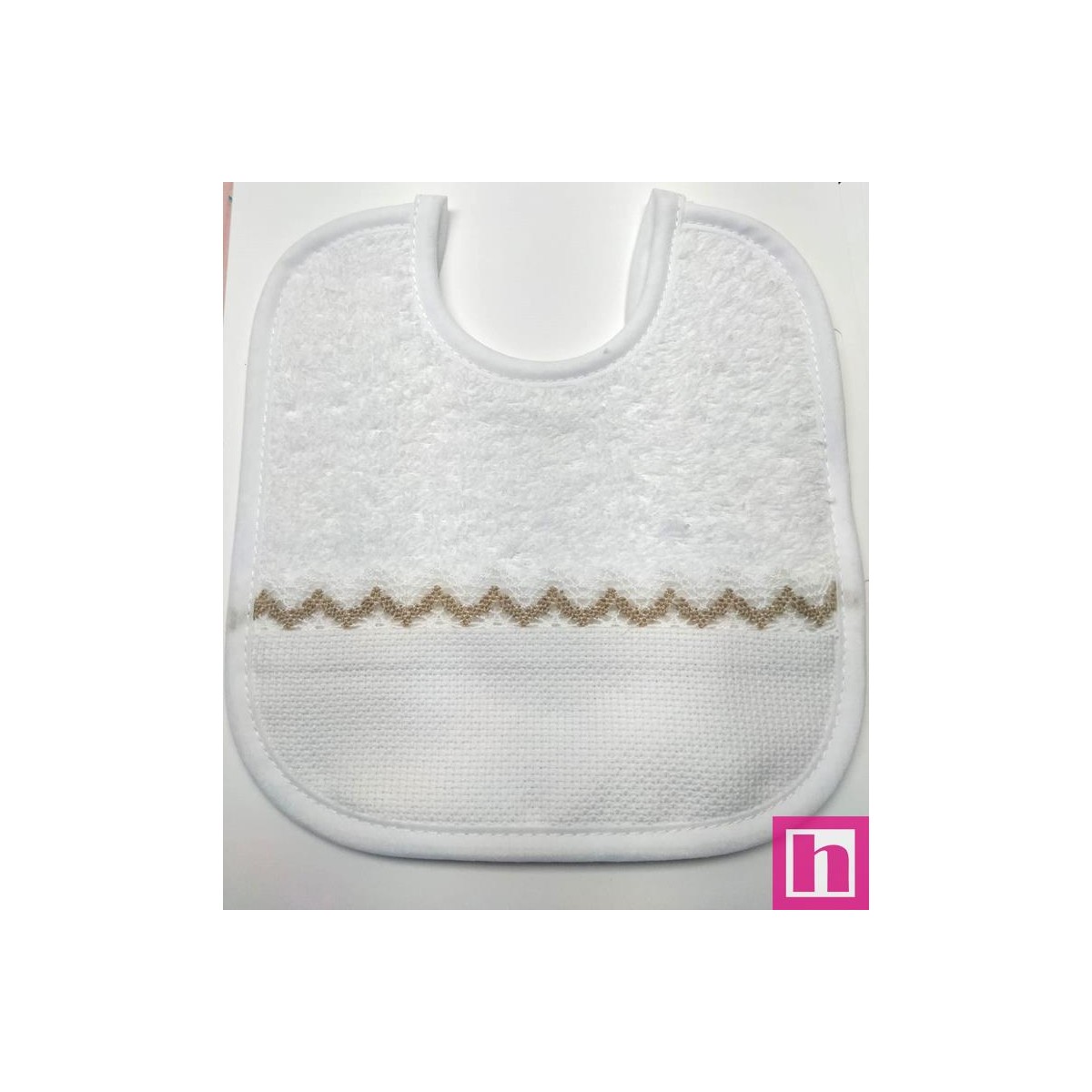 983407-070 BABERO RIZO+PANAMA ALIVIA 19X20 POLIESTER 60%-ALGODON 40% BLANCO/CAMEL Venta en piezas de 3.00 U