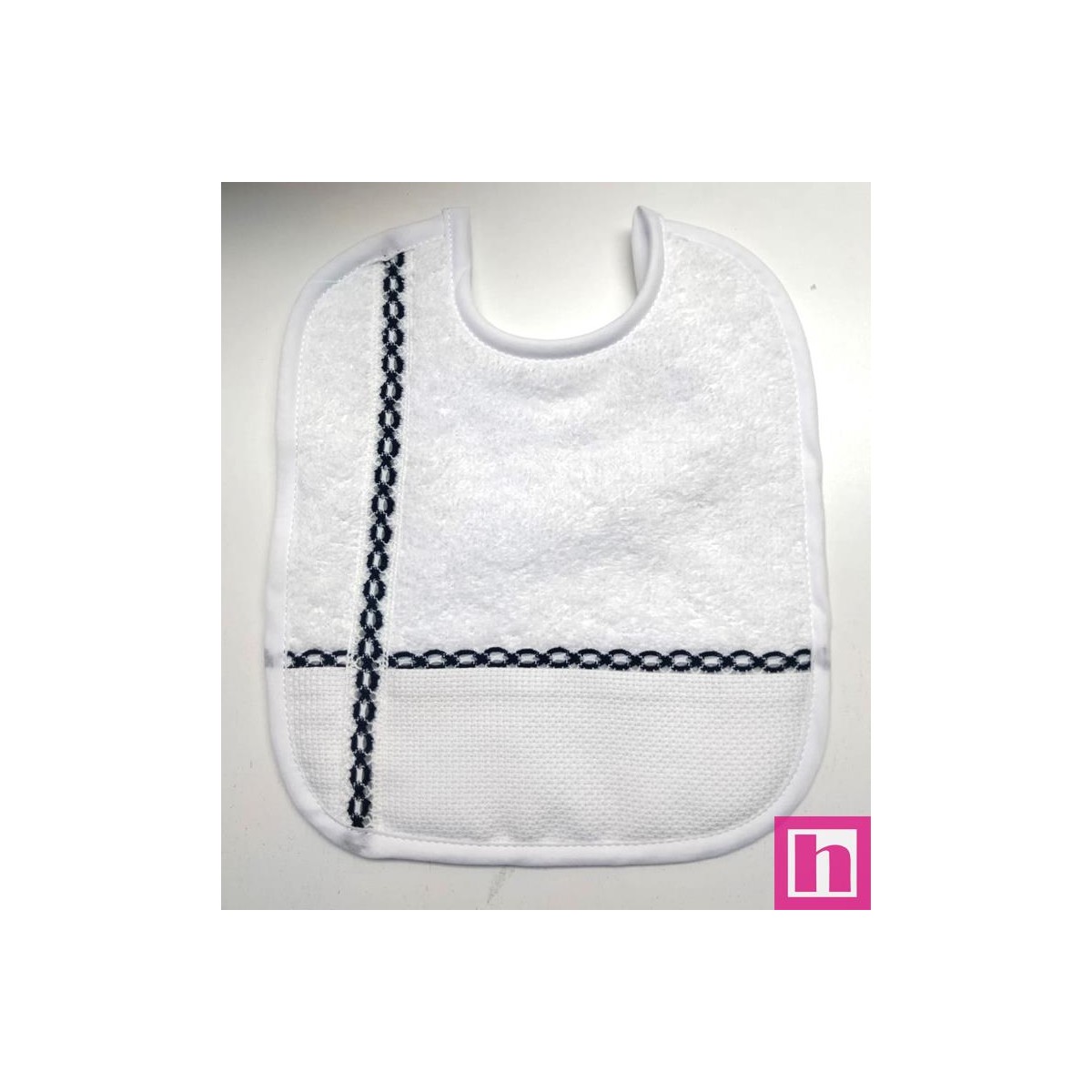 983406-022 BABERO RIZO+PANAMA ALKAX 19X22 POLIESTER 60%-ALGODON 40% BLANCO/MARINO Venta en piezas de 3.00 U