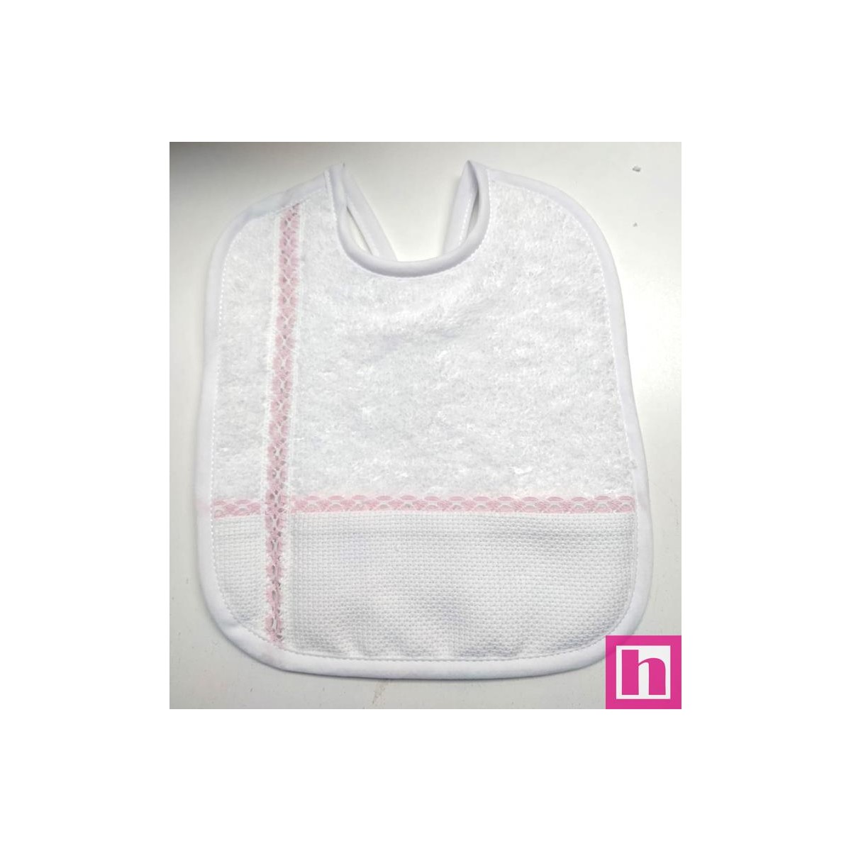983406-011 BABERO RIZO+PANAMA ALKAX 19X22 POLIESTER 60%-ALGODON 40% BLANCO/ROSA Venta en piezas de 3.00 U