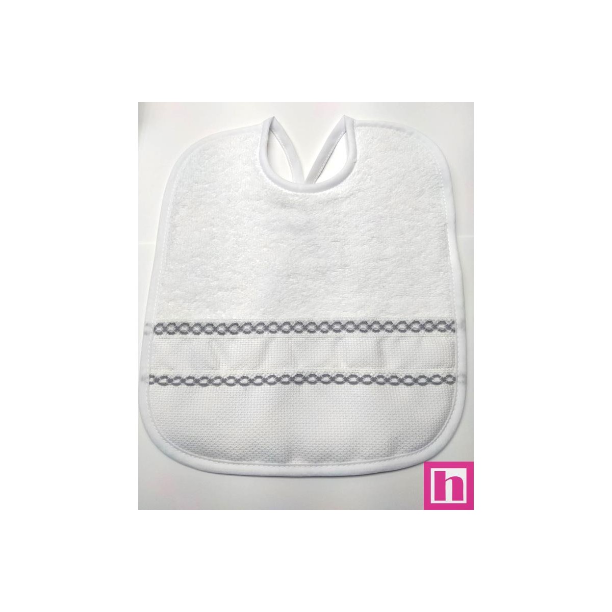 983409-029 BABERO RIZO+PANAMA FRANCO 24X30 POLIESTER 60%-ALGODON 40% BLANCO/GRIS Venta en piezas de 3.00 U
