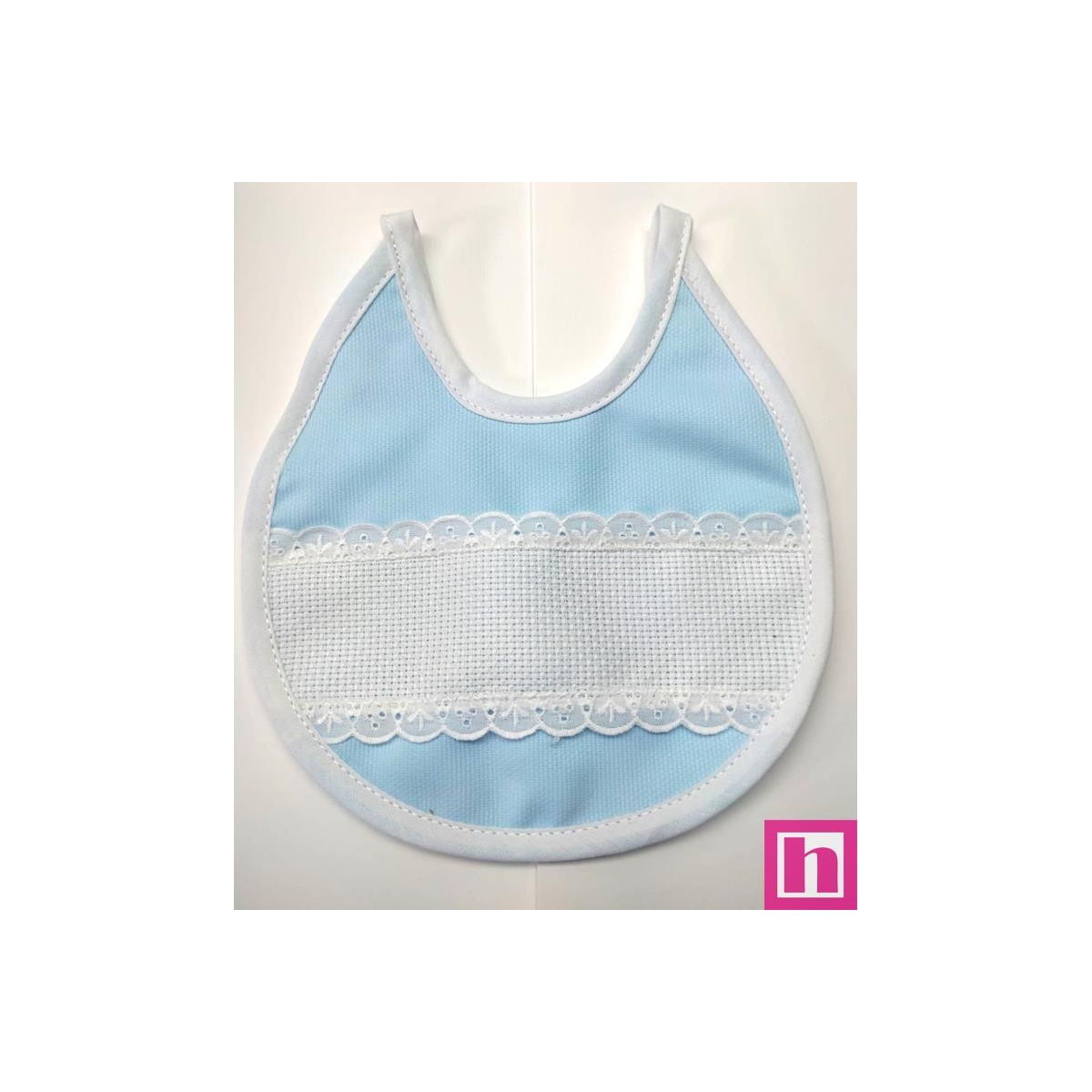 8465-021 BABERO RIZO+PANAMA MARIA RED.20 POLIESTER 60%-ALGODON 40% BLANCO/VIVO CELESTE Venta en piezas de 3.00 U