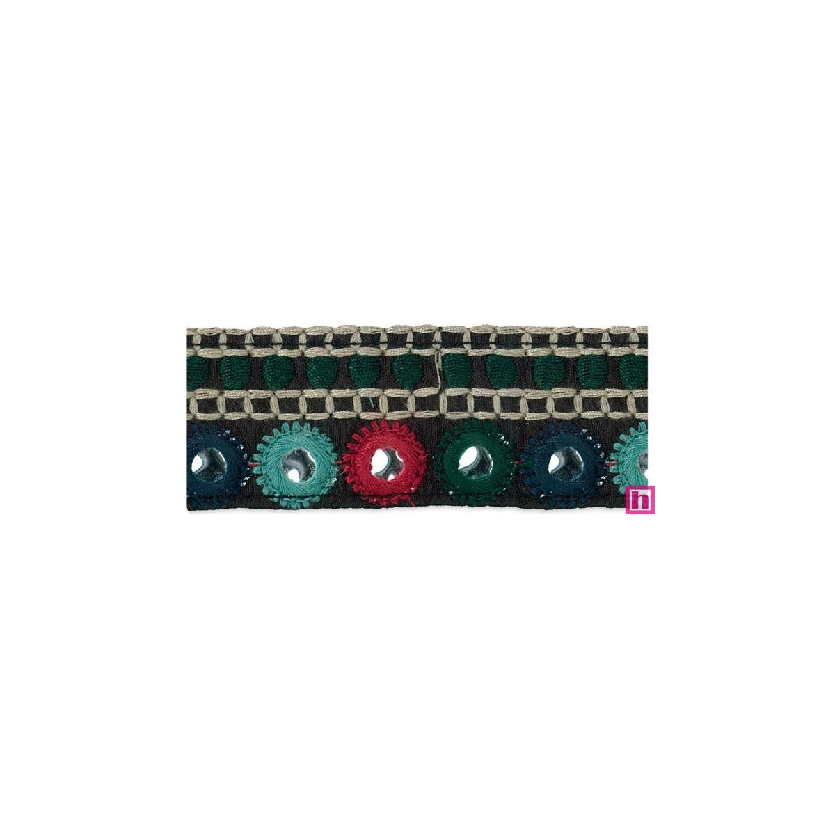981027-0001 ESPEJO GALON BORDADO 32 MM. POLIESTER 100% VERDE Venta en piezas de 9.30 M