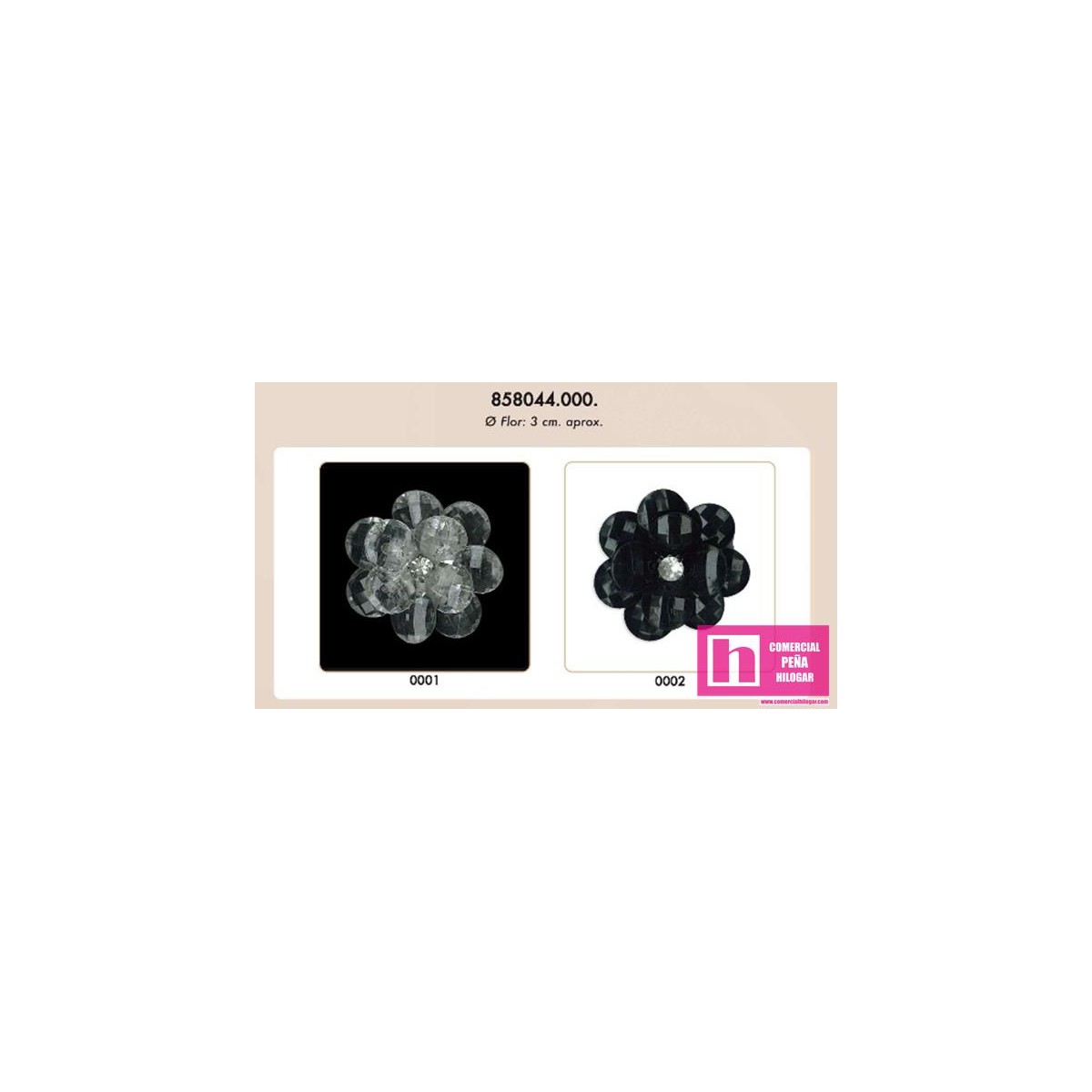 858044-0002 AFRA FLOR CRISTAL 3 CM ACRILICO 100% NEGRO Venta en piezas de 5.00 U