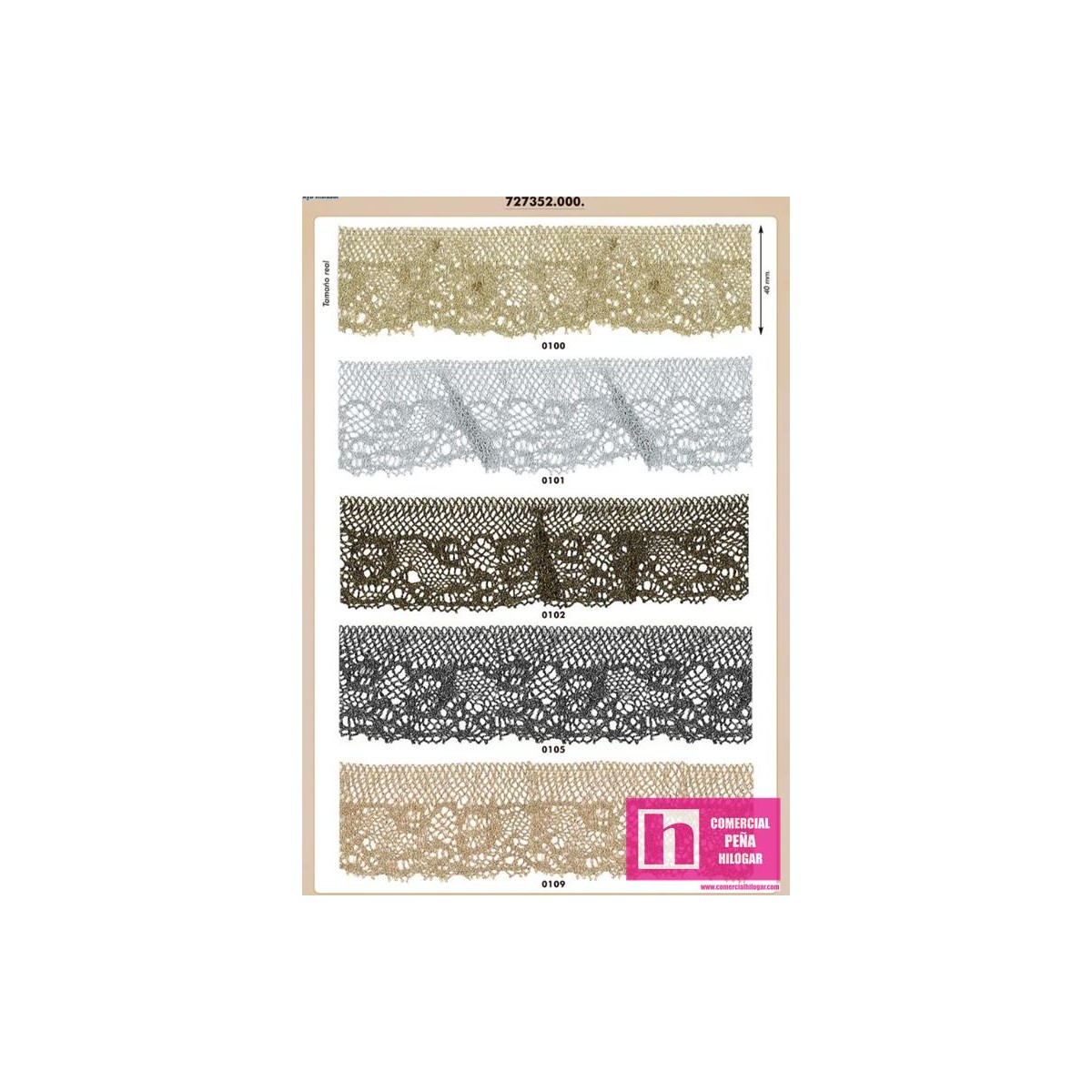 725352-0102 ESTILOSO PUNTILLA FRUNCIDA ELASTICA 40 MM. NYLON 50%-LUREX 50% ORO VIEJO Venta en piezas de 25.00 M