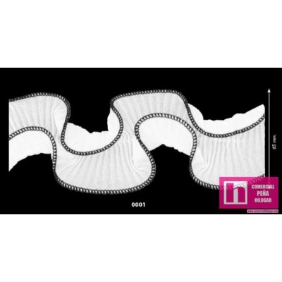333718-102 GALON PLISADO FRUNCIDO ORFEO 60 MM. POLIESTER 100% BLANCO/NEGRO Venta en piezas de 20.00 M