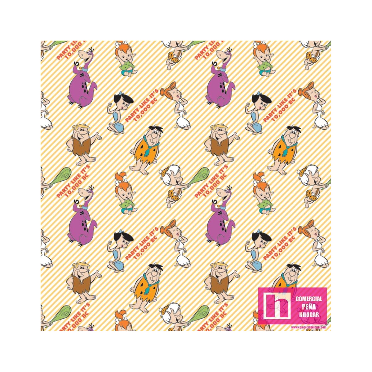 P108-24060206-04 PATCH. AMERICANO PICAPIEDRA-THE FLINTSTONES (03) 110 CM. ALGODON 100% BLANCO/AMARILLO Venta en piezas de 7.00 M
